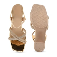 Stepee Casual & Fancy Embellished Party Wear Open Toe Block Heel Sandal with Slingback Ankle Strap for women