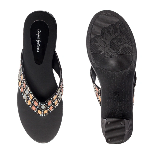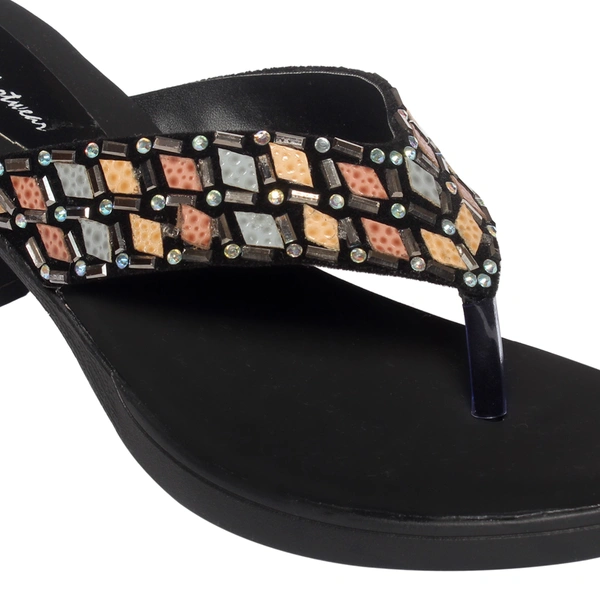 Elegant stud look slipper in short block heel