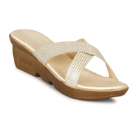 | Stepee Presents Elegant Wedge Sandals for women, perfect for casual outings, parties, and weddings. Step into elegance for any occasion with these Open Back Slip on Open Toe Cross Strap 1.5 inch Wedge Heel Sandal. |