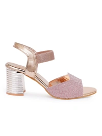 Trendy shimmer strap sandal in block heel